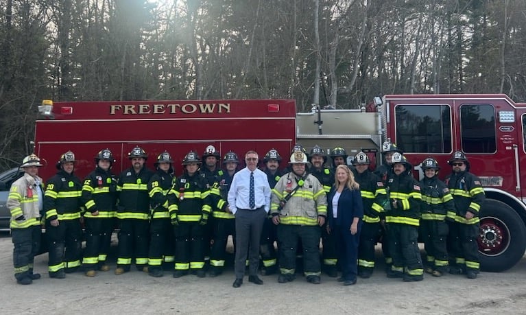 Senator Michael Rodrigues and Town Administrator Deborah Pettey visited to thank our firefighters for their service and to view some of the department’s new turnout gear. Thanks to Senator Rodrigues’ efforts, the Freetown Fire Department received $65,000 in funding, which enabled the purchase of 15 new sets of turnout gear—critical equipment that helps keep our firefighters safe on the job.