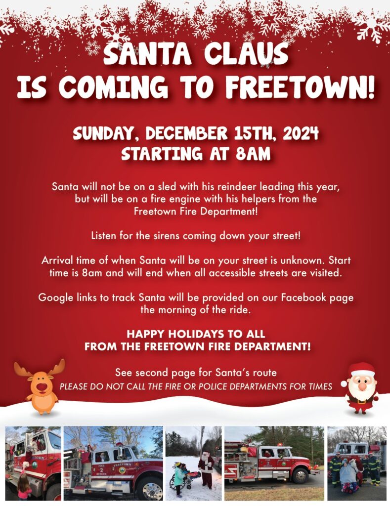 The tradition continues! Santa is coming to Freetown on Sunday, December 15th! With the help of our firefighters, Santa will be making his way through…